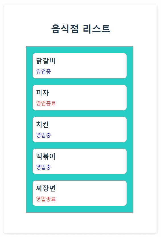 "영업중"은 파란색, "영업종료"는 빨간색으로 뜬다.