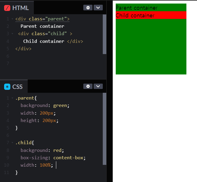 CSS 표준에서 지정한 초기값으로, box-sizing 속성을 굳이 안써도 콘텐츠에 width나 height를 지정한다면 box-sizing: content-box 를 한 것과 동일하게 적용된다.