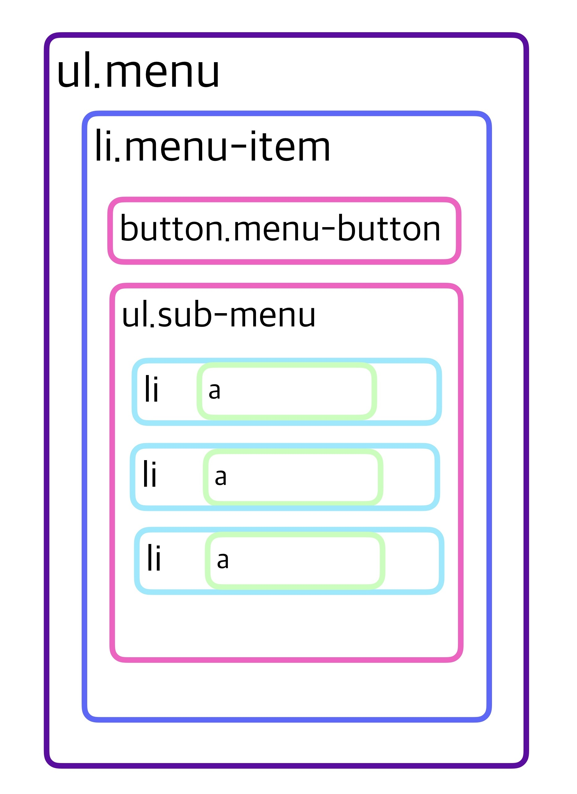 - .menu-item : 메인메뉴 개별요소들 (”HTML에 대해”, “CSS에 대해”, “웹표준” 등..)