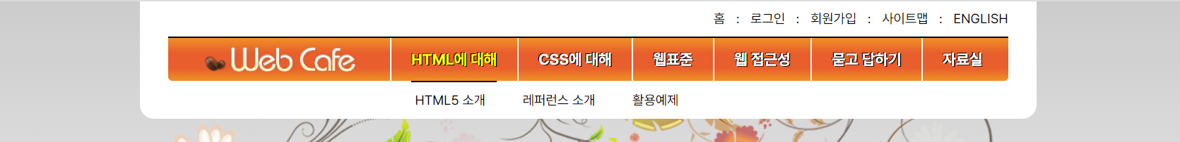 - .menu : 메인메뉴 전체 (Web Cafe 로고 기준으로 로고를 제외한 오른쪽 전부)