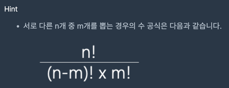 머쓱이는 구슬을 친구들에게 나누어주려고 합니다. 구슬은 모두 다르게 생겼습니다. 머쓱이가 갖고 있는 구슬의 개수 balls와 친구들에게 나누어 줄 구슬 개수 share이 매개변수로 주어질 때, balls개의 구슬 중 share개의 구슬을 고르는 가능한 모든 경우의 수를 return 하는 solution 함수를 완성해주세요.