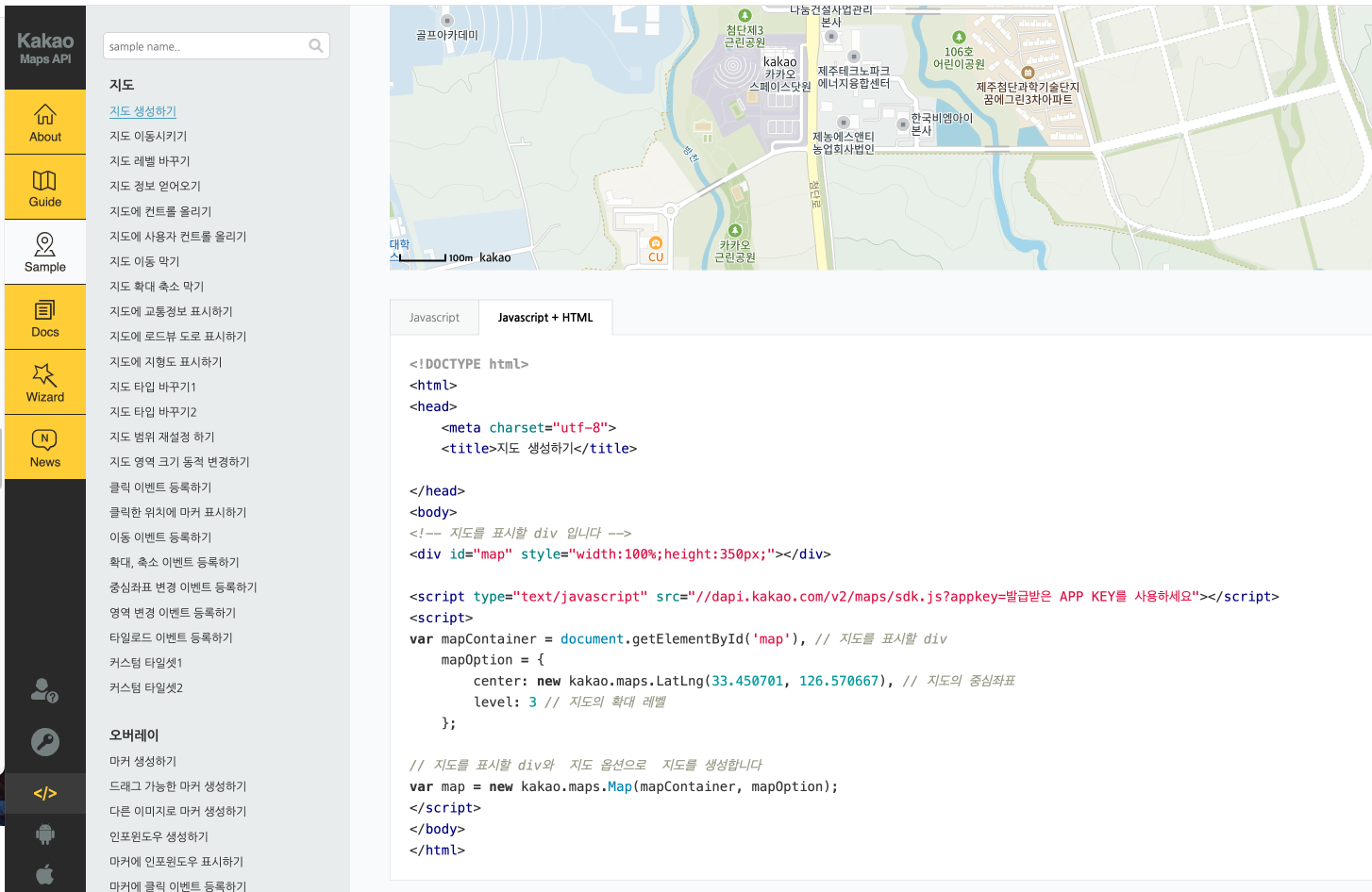 에 들어가면 거기서 JavaScript 키를 복사해서 저기 위에 붙여 넣으면 끝!