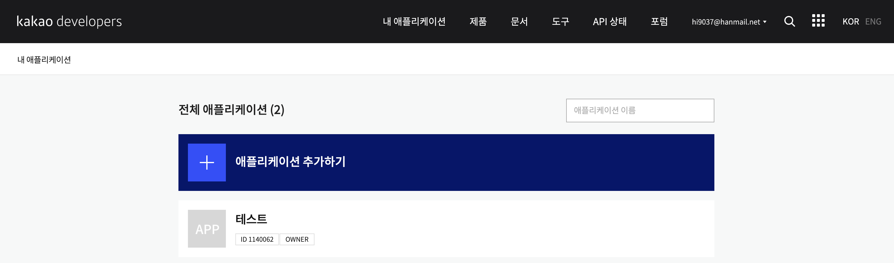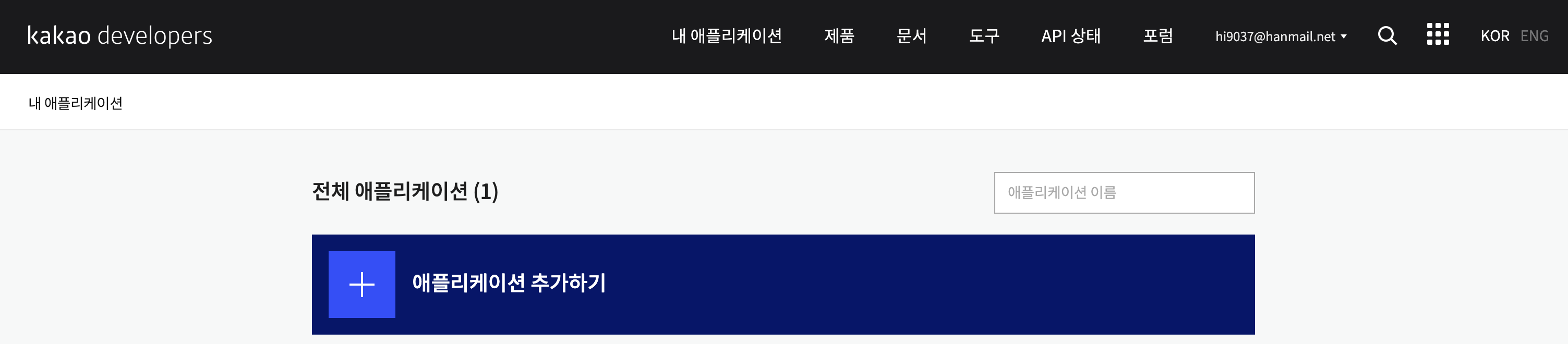 3. " + 어플리케이션 추가하기" 버튼을 클릭한다.