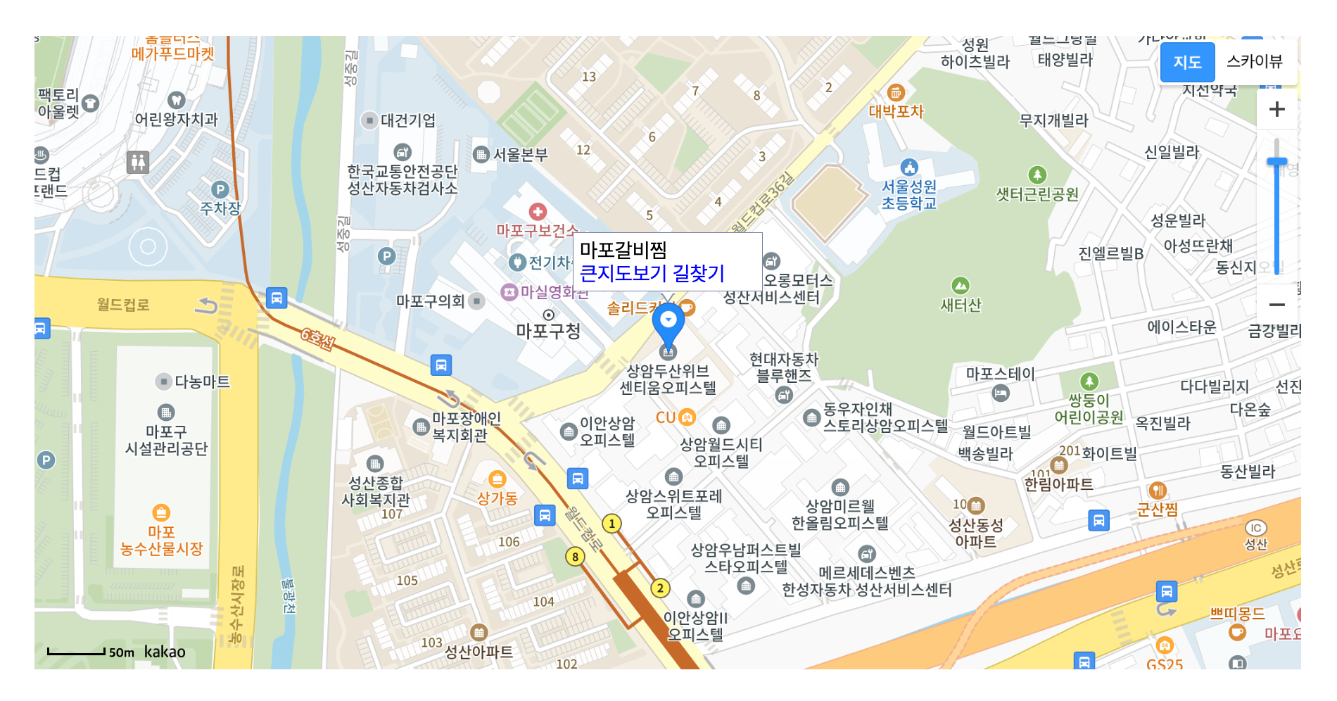 - 마커(파란색 핀)로 해당 장소의 위치를 표시