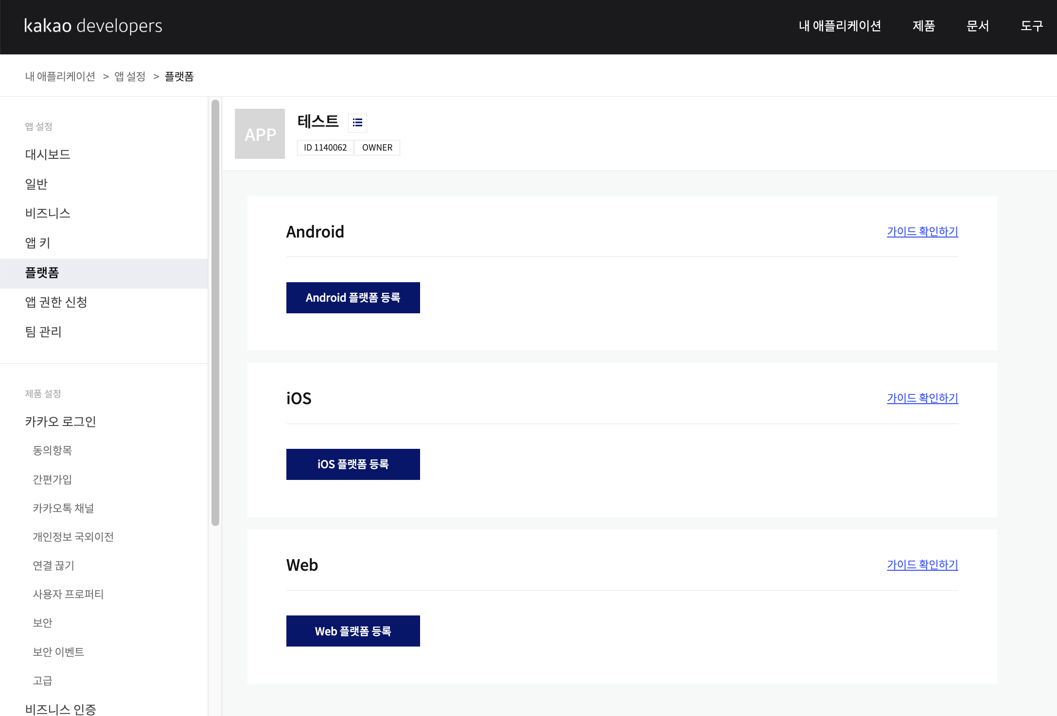좌측 메뉴바에 "플랫폼"을 들어가서