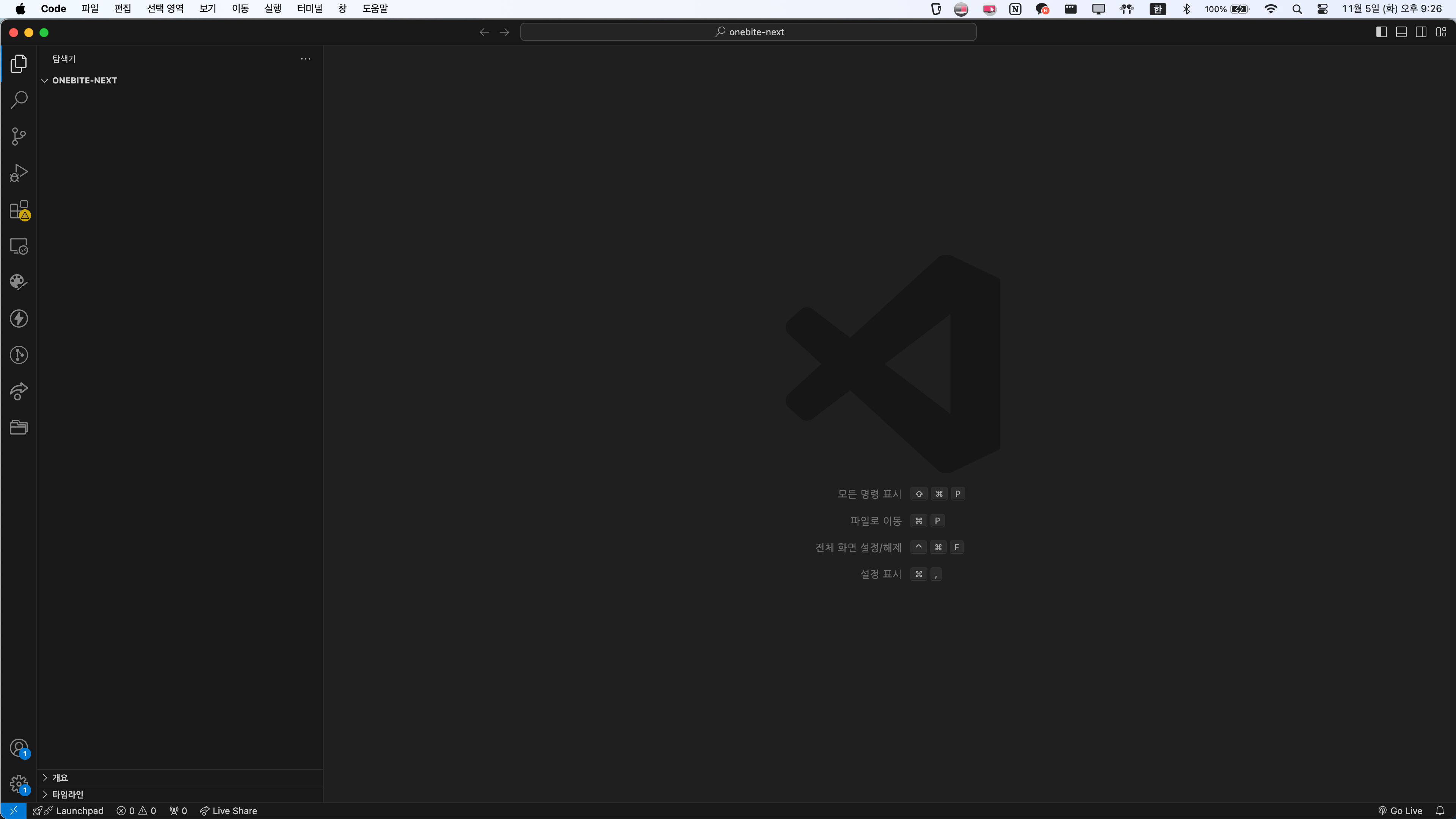 Next.js를 완전 처음 접하는 입문자 기준에서, Next 프로젝트를 시작하는 법을 알아보자! 1. 폴더를 하나 생성한다. (필자가 만든 폴더 이름은 "onebite-next") 2. VsCode에서 "onebite-next"