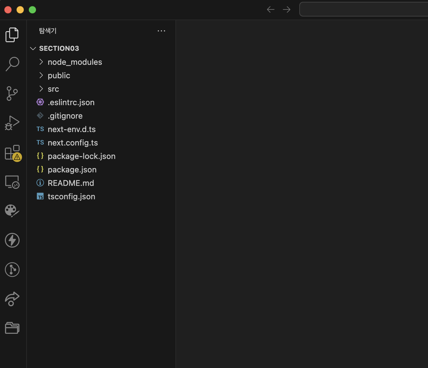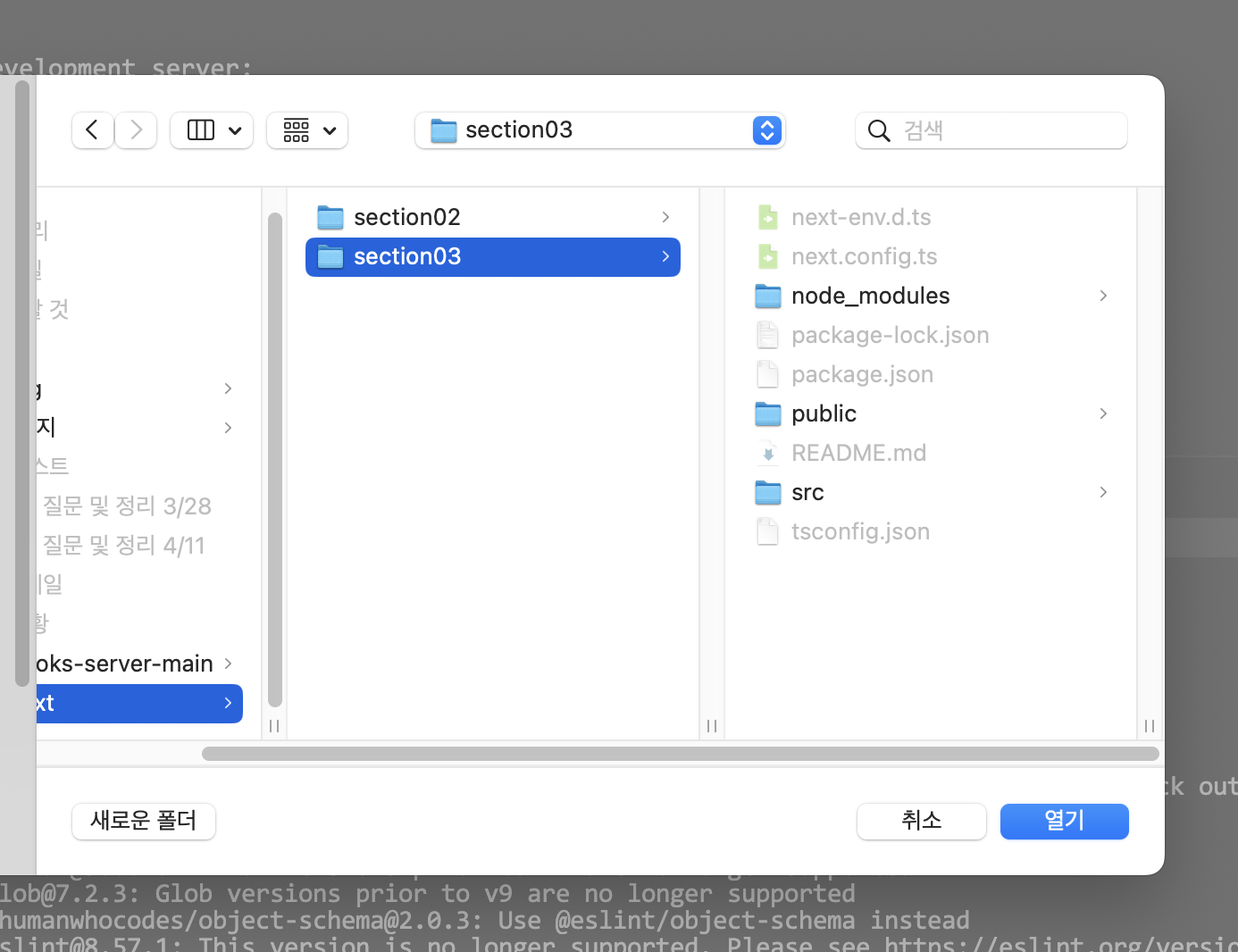 VsCode에서 폴더 열기를 누르고 다시 section03 폴더를 연다.