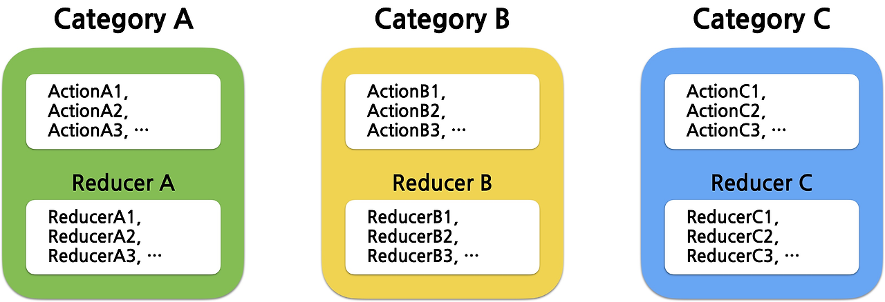 이러한 Action과 Reducer는 공통된 카테고리로 모아서 분류할 수 있게 된다.
