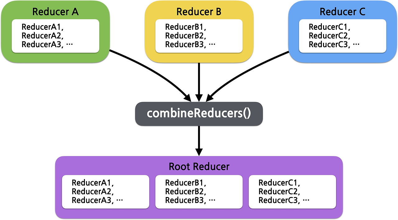 이때 사용하는 함수가 바로 combineReducers() 이다.