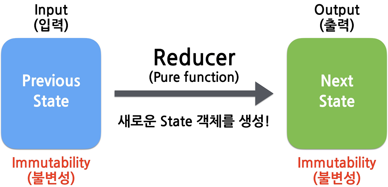 - 예를 들어, Reducer 내에서 서버와 통신을 해서 데이터를 받아오거나 하는 등의 동작을 하면 안 된다.