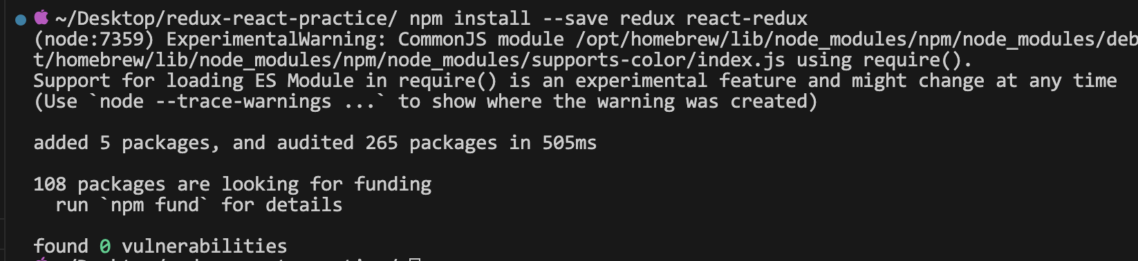 1. 명령어로 Redux와 React 패키지를 설치해준다.