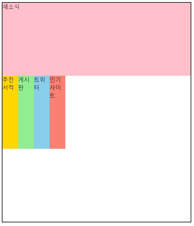 분홍색(새소식) 부분을 1~2번 행(row), 1~13번 열(column)에 배치한다.