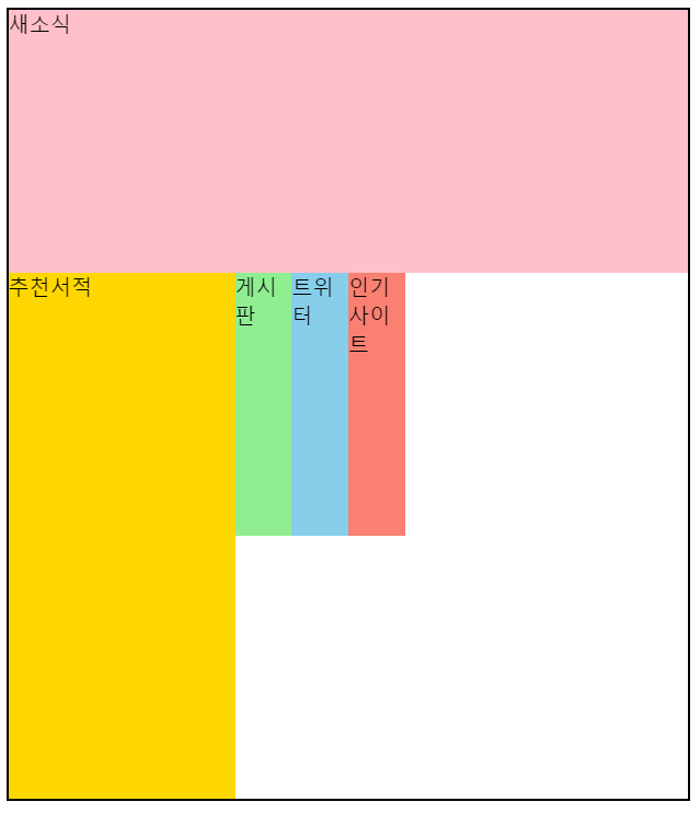 노란색(추천서적) 부분을 2~4번 행(row), 1~5번 열(column)에 배치한다.