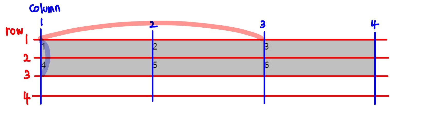 grid-column: 1 / 3; (grid-column-start / grid-column-end)