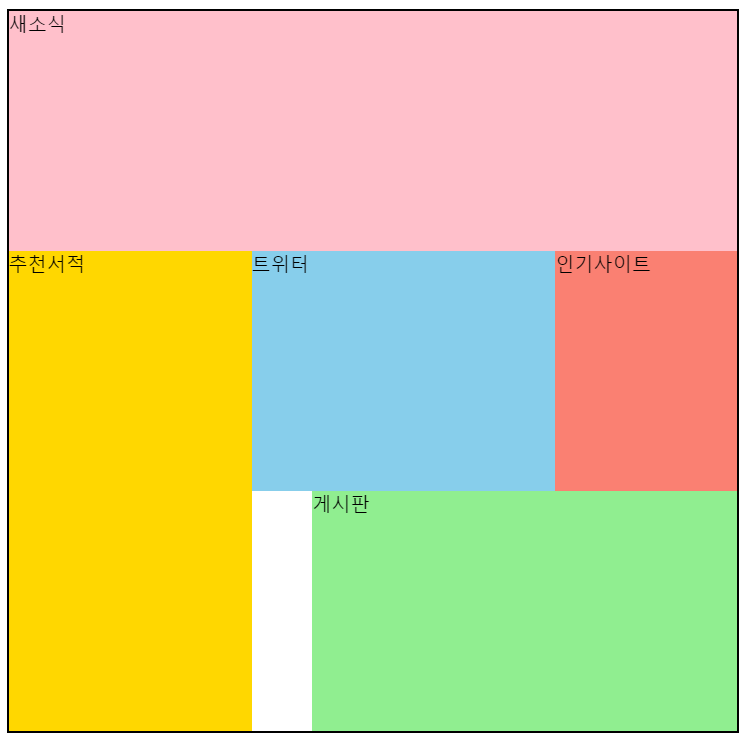 파란색(트위터) 부분을 2-3번 행(row), 5~10번 열(column)에 배치한다.