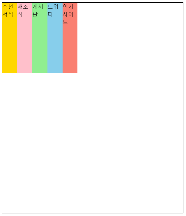 노란색(추천서적) 부분을 2~4번 행(row), 1~5번 열(column)에 배치한다.
