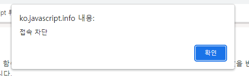 (4) if절의 조건 ( checkAge(age) )가 false가 되니까 if절인 { alert( '접속 차단' ) } 이 실행된다.