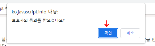 (3) confirm 함수가 실행 됐을 때 '확인' 버튼을 누르면 return으로 true가 반환된다.