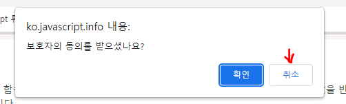 (3) confirm 함수가 실행 됐을 때 '취소' 버튼을 누르면 return으로 false가 반환된다.