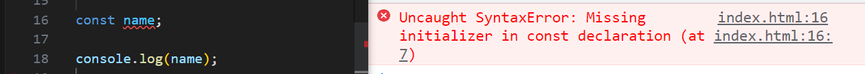 console.log(name); // Uncaught ReferenceError: Cannot access 'name' before initialization