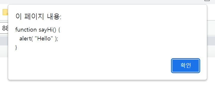 alert( sayHi ); =>함수 그 자체(전체)가 알람창에 뜸