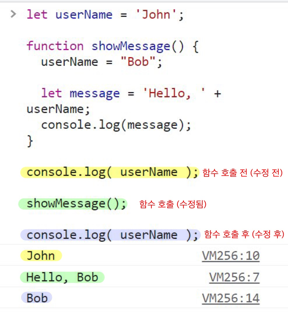 console.log( userName ); // 함수에 의해 Bob 으로 값이 바뀜