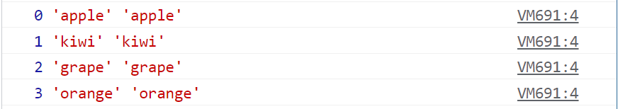 console.log(`${item}는 ${array} 배열 안에 인덱스 ${index}에 있다.`);