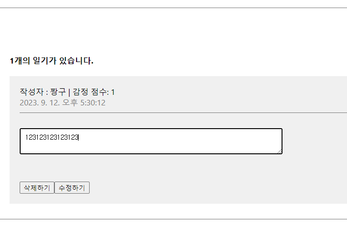 코드가 1탄부터 이어지기 때문에 1탄부터 보고 오셔야 합니다~! 1탄 https://dev-ini.tistory.com/73 { return ( 작성자 : {author} | 감정 점수: {emotion} {new Date(created_date).toLocaleString()} {content} { // 삭제하기 버튼