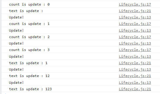 카운터 버튼을 누르거나 인풋에 글을 작성하면 업데이트가 돼서 콘솔에 "Update!" 가 출력된다.