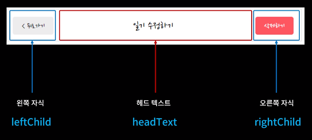 rightChild={<MyButton text={'오른쪽 버튼'} onClick={()=>alert("오른쪽 클릭")}/>}/>