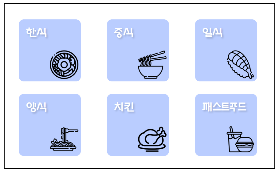 예컨대, 먹거리를 누르면 한식, 중식, 일식, 양식, 치킨 , 패스트푸드가 담긴 페이지가 뜨게끔 route를 설정해야한다.