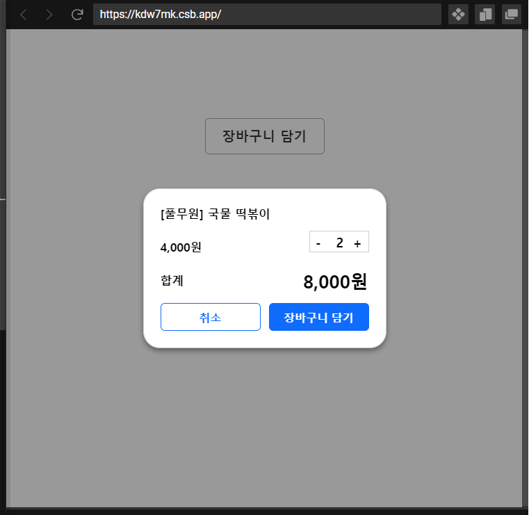 3. 장바구니 담기 버튼을 누르면 모달창이 열리게 하기