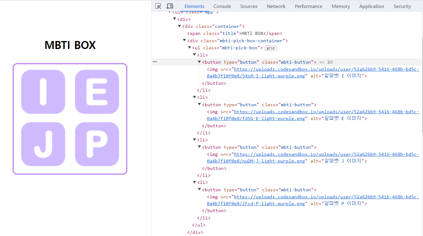 <img src={imageSrcI} alt="MBTI I 아이콘"></img> // 이미지상태를 img src에 달아준다.