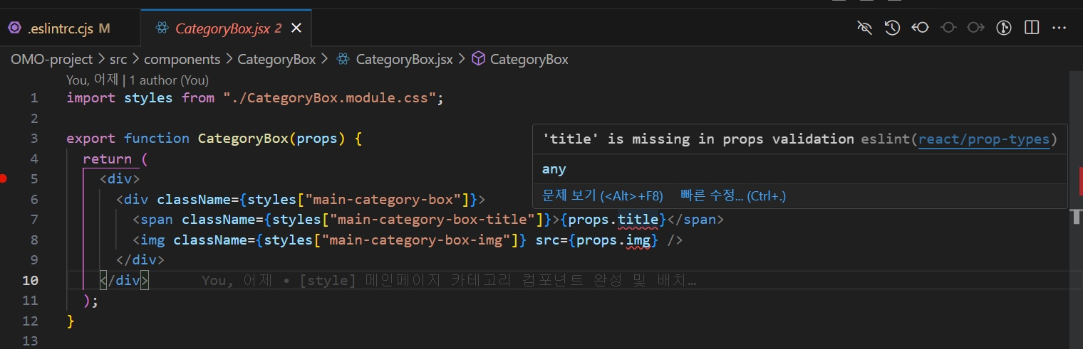 [React] eslint error missing in props validation 오류 해결방법