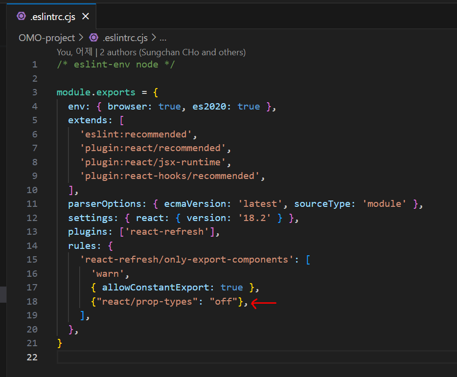 .eslintrc.cjs (혹은 .eslintrc.json)에 아래 조건 추가
