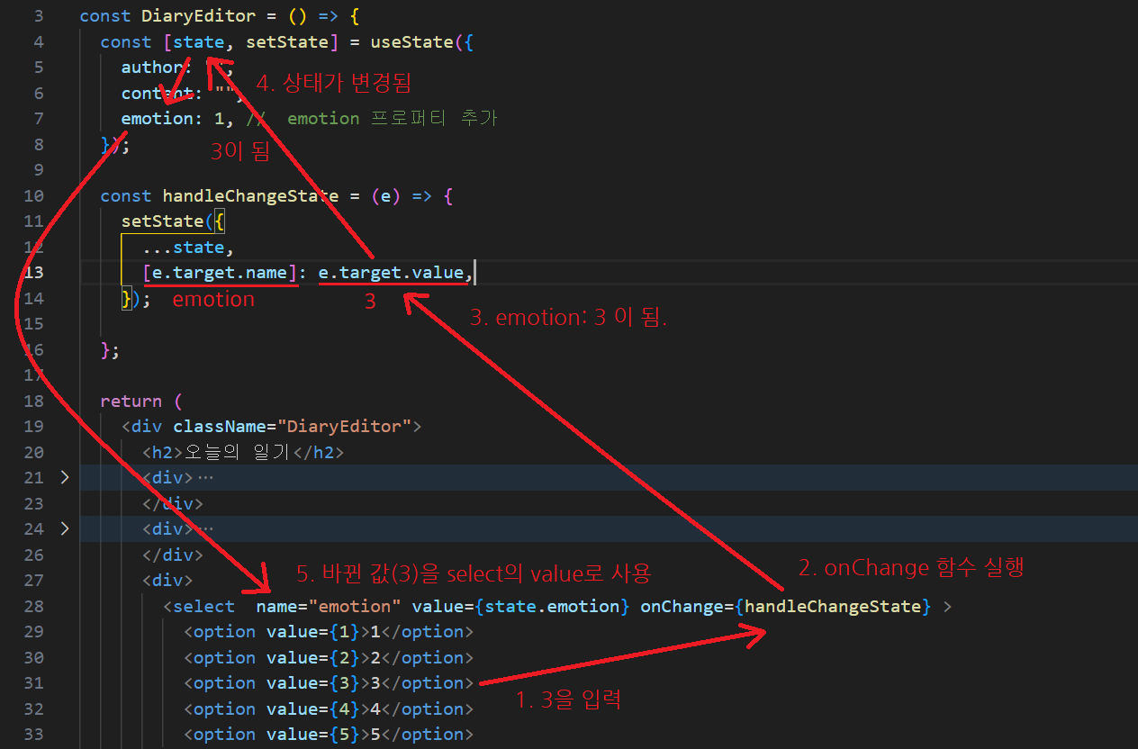 <select name="emotion" value={state.emotion} onChange={handleChangeState} >